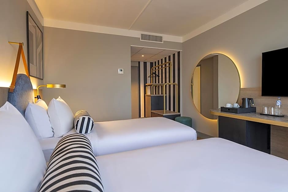 Providing free toiletries, this twin room includes a private bathroom with a walk-in shower and a hairdryer. The air-conditioned twin room provides a flat-screen TV with satellite channels, soundproof walls, a tea and coffee maker, a seating area as well as city views. The unit offers 2 beds.